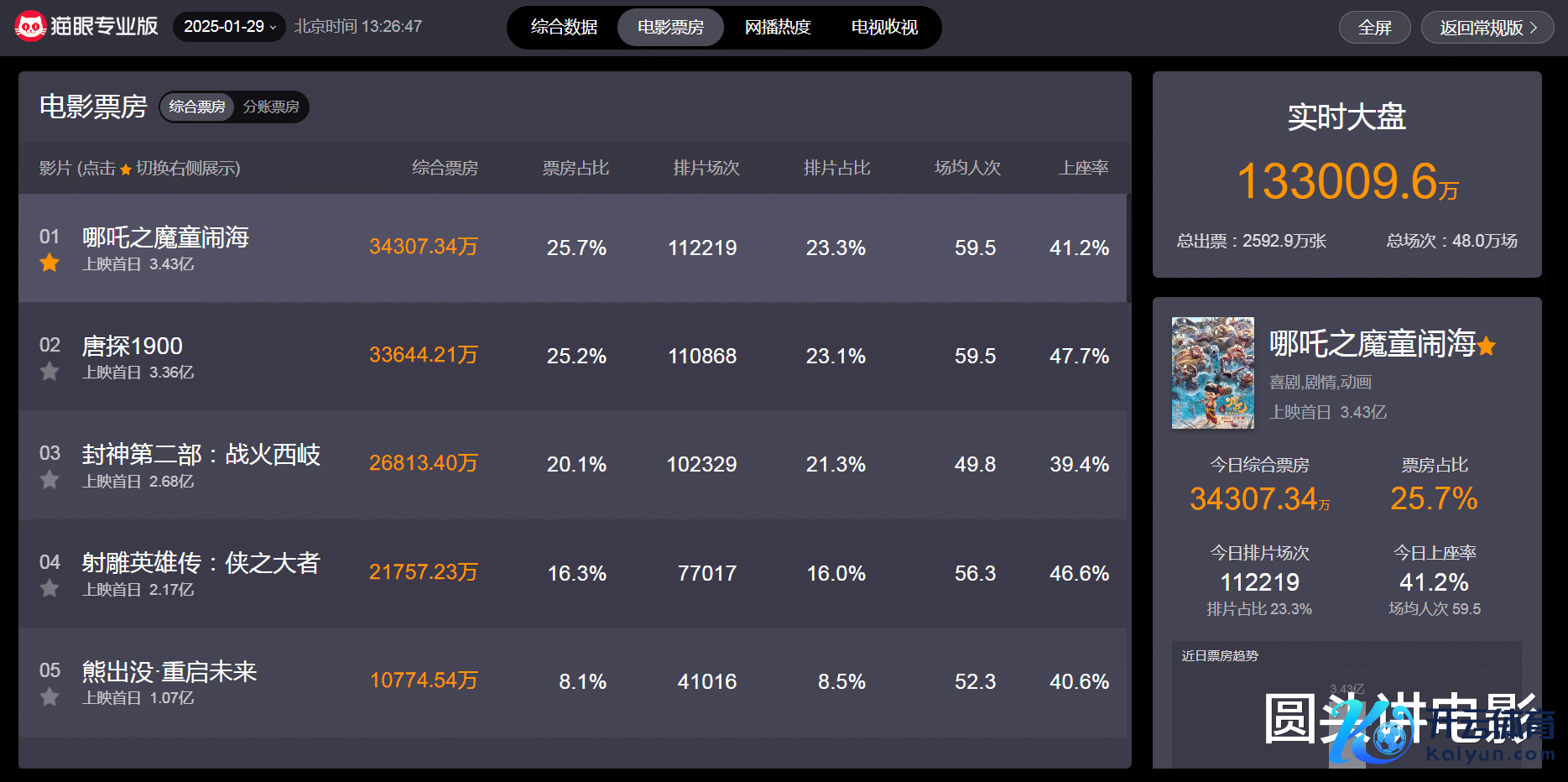 界限2025年1月29日中午13时26分,从“猫眼专科版”及时数据线路可知开云体育,刻下热映电影票房榜前五鉴识如下: