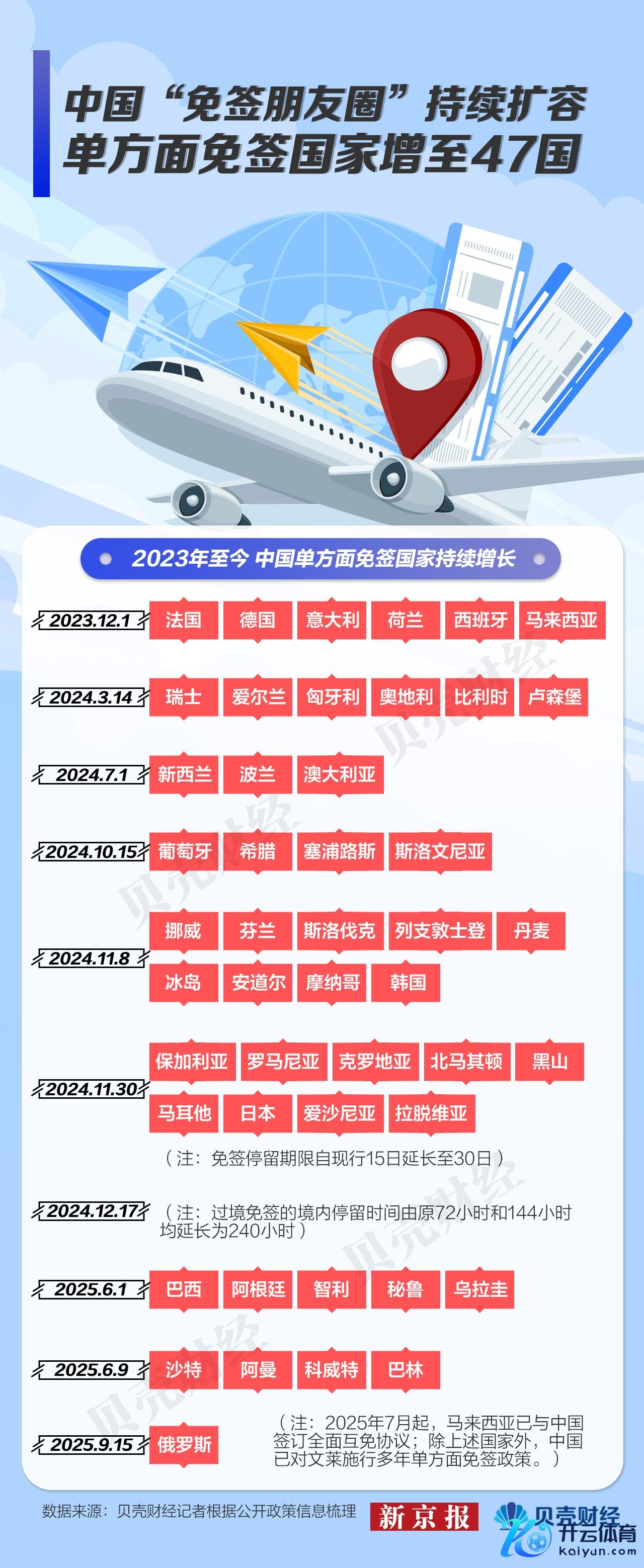 适度本年9月15日,跟着俄罗斯加入“免签一又友圈”,中国已对47个国度引申片面免签、与29个国度达周详面互免签证,过境免签计策隐蔽面也延长到55国,适用省份扩大至24省60个港口。