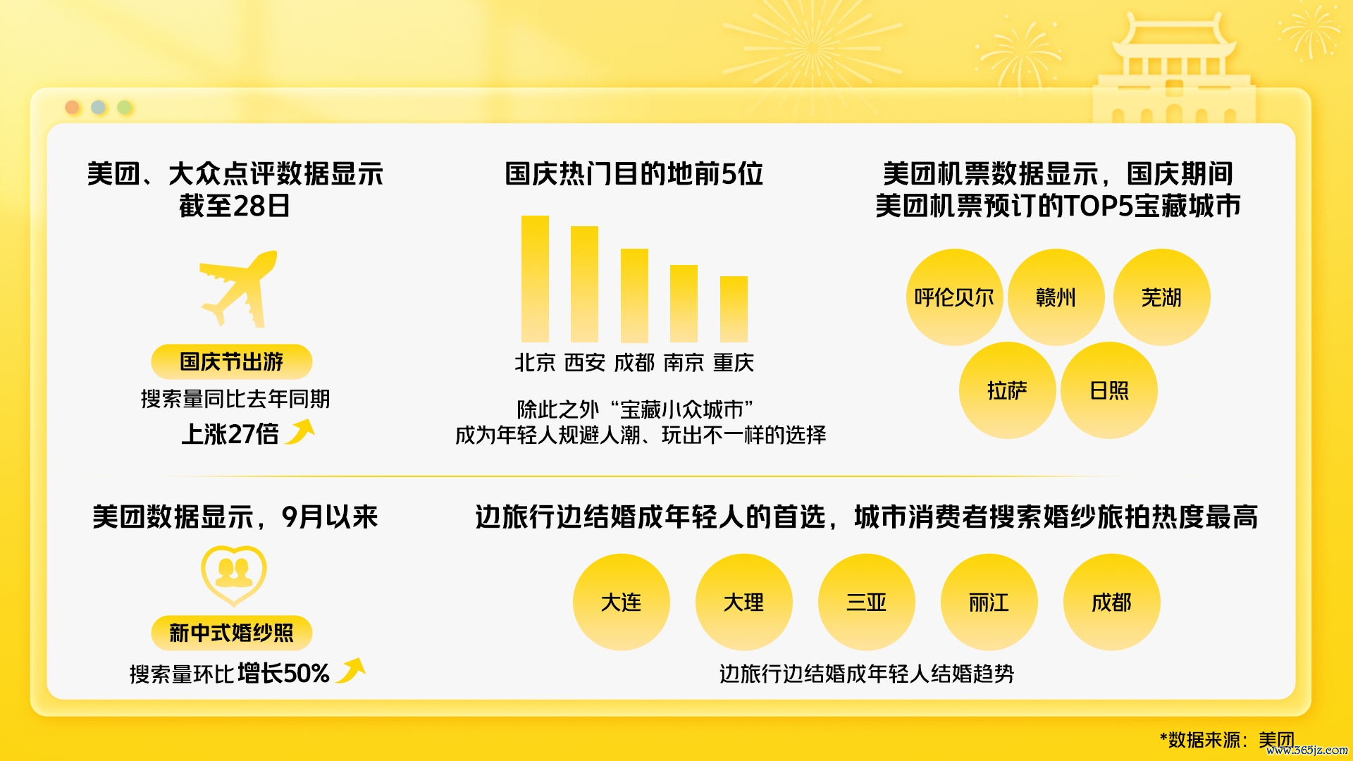 国庆假期行将降临,出门旅游、娱乐舒适需求将集会开释。据南边+记者从好意思团、人人点评了解到的数据知道,戒指9月28日,“国庆节出游”搜索量同比客岁同期高潮27倍。国庆热点想法地前5位分别是北京、西安、成都、南京、重庆。除此以外,“矿藏小众城市”成为年青东谈主隐私东谈主潮、玩出不同样的继承。