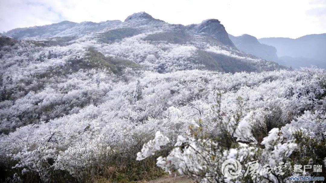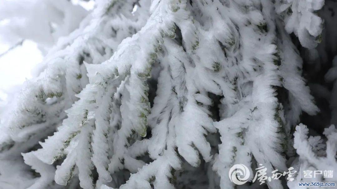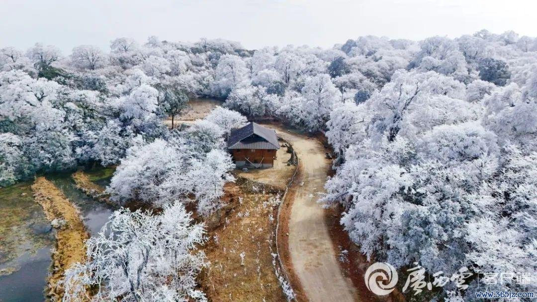 12月14日,融水苗族自治县杆洞乡尧告摩天岭牛场的雾凇景不雅,好意思如童话全国。梁强 摄