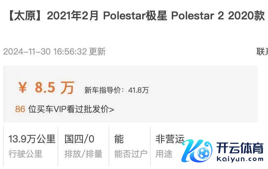 如今,极星在中国的二手车价暴跌。凭证中原二手车网的信息,2021年上牌的2020款极星2售价一经降至8.5万元,其新车交流价为41.8万元,跌幅达33.3万元,比情况雷同、行驶里程多5万公里的蔚来EC6还低1.48万元。