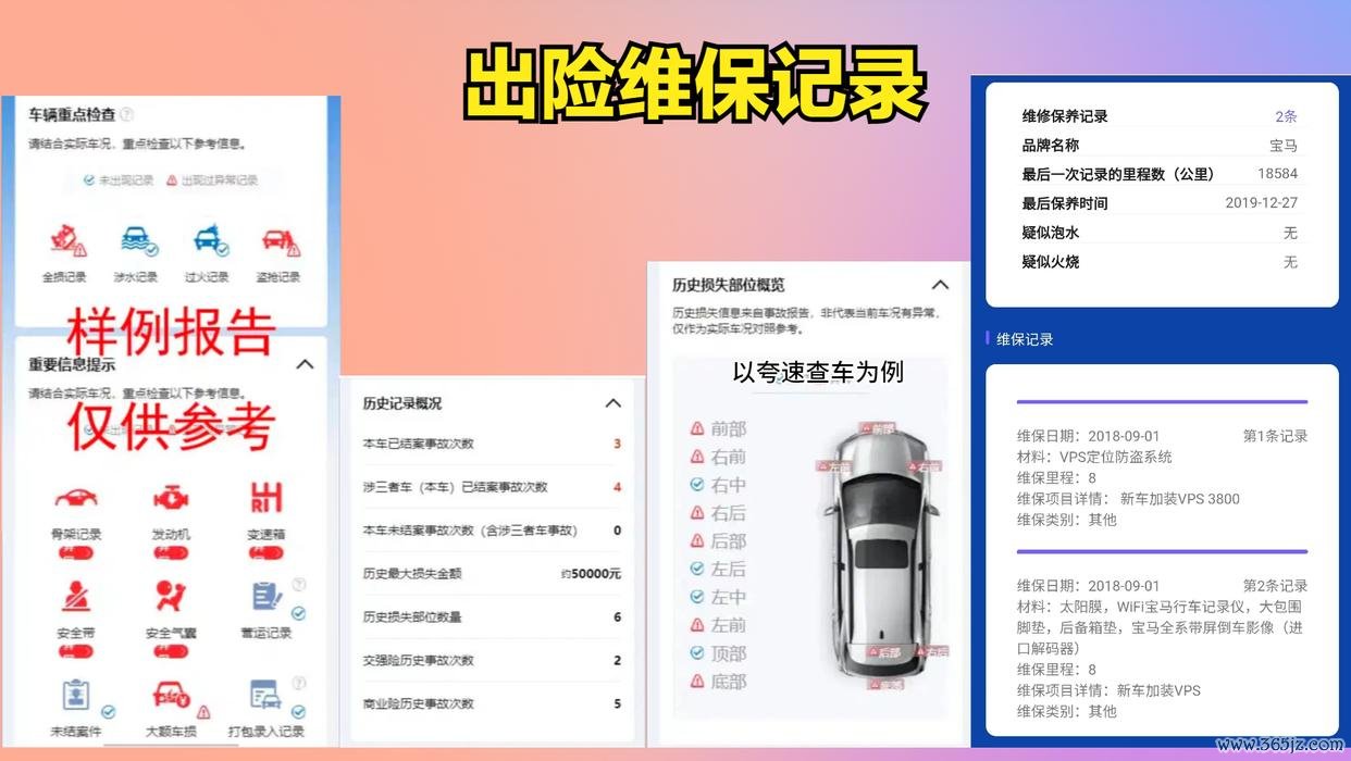 保障纪录查询:查询车辆的保障纪录,了解车辆是否发生过事故、事故的严重进度以及理赔金额等信息。如若车辆有屡次脱险纪录或者触及大额理赔的事故,可能暴露车辆存在较大的潜在问题。