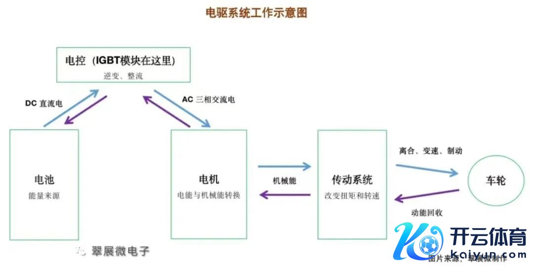 要弄昭着IGBT模块,就要先了解新能源汽车的电驱系统,先用一句话空洞电驱系统怎样职责:在驾驶新能源汽车时,电机适度器把能源电板放出的直流电(DC)变为交流电(AC)(这个过程即逆变),让驱动电机职责,电机将电能转换成机械能,再通过传动系统(主如若减慢器)让汽车的轮子跑起来。反过来,把车轮的机械能转换存储到电板的过程即是动能回收。