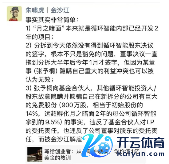 此事爆出后,天然闹得沸沸扬扬,各式爆料著作束缚,然则少有首创东说念主下场切身“参战”。直至近日,金沙江创投利用结伴东说念主朱啸虎在一又友圈贯穿发文指摘此事,投资东说念主与月之暗面之间的矛盾公开化,并再次升级。