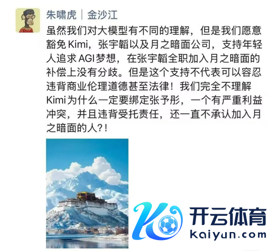 遭朱啸虎贯穿发文炮轰后,月之暗面Kimi首创东说念主杨植麟首度发声文书。