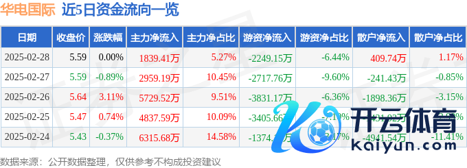 本站音问,死心2025年2月28日收盘,华电海外(600027)报收于5.59元,高潮0.0%,换手率0.73%,成交量62.32万手,成交额3.49亿元。