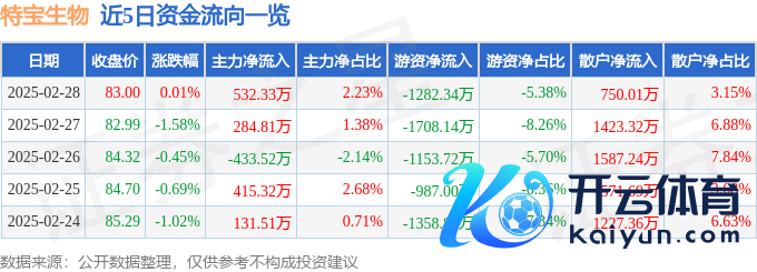 2月28日的资金流向数据方面,主力资金净流入532.33万元,占总成交额2.23%,游资资金净流出1282.34万元,占总成交额5.38%,散户资金净流入750.01万元,占总成交额3.15%。