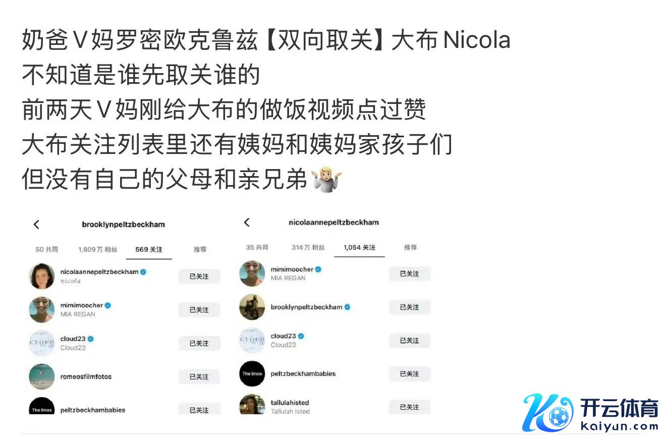 大布佳耦取关父母后!小贝佳耦身边的知情东说念主自满,贝克汉姆佳耦历久不会住手爱布鲁克林,他们历久都会在他身边,也一直但愿他知说念这少量,关于大布的袭取,他们心碎无比,因为这是他念念要和父母断交关系的袭取。