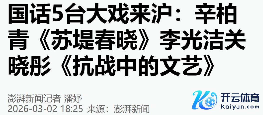 《国话5台大戏来沪:辛柏青〈苏堤春晓〉李光洁关晓彤〈抗战中的文艺〉》(澎湃新闻)