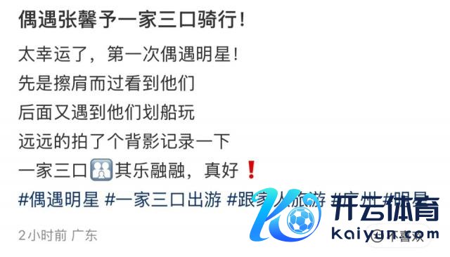 近日,有网友在外交平台晒照默示在广州偶遇张馨予一家三口骑行,其后还碰到他们统统荡舟,一家三口其乐融融,卓绝温馨有爱。