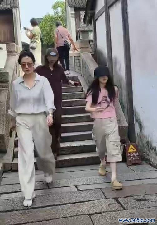 除此除外,还看到了妹妹张子枫,依旧很有仙女感,路透中穿戴粉色 T 恤,工装短裤,致使有点小孩气。