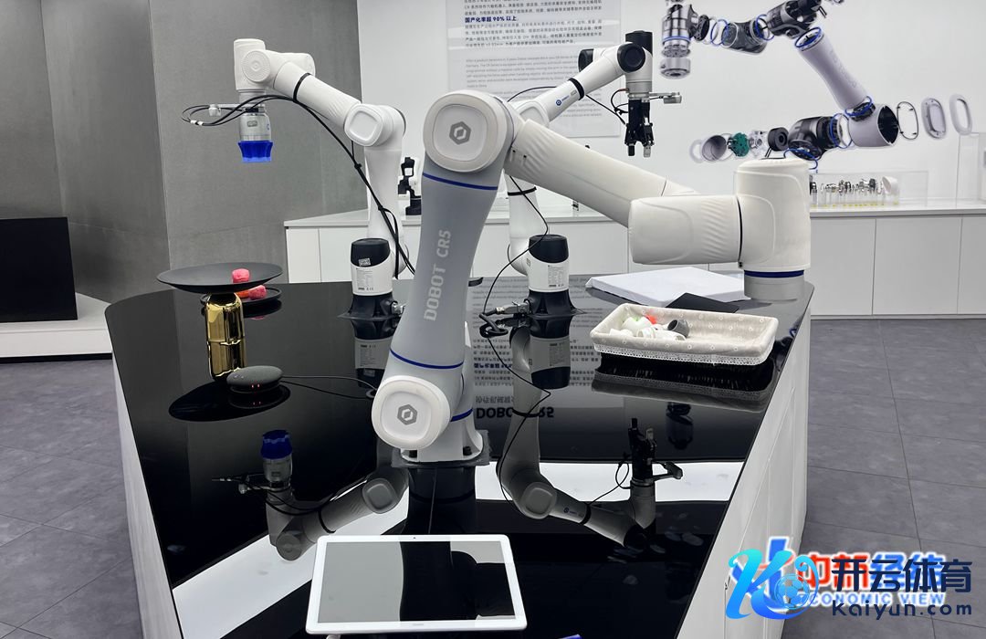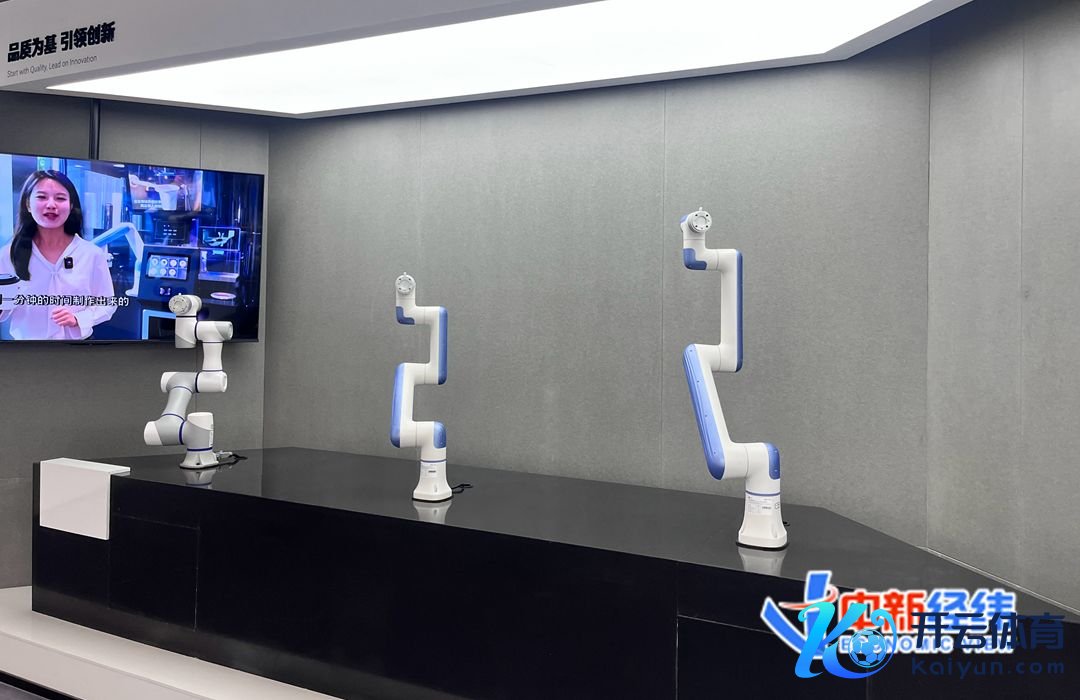 展厅现场,一只机械臂在东谈主连合时能速即自主躲避。据现场时间东谈主员先容,这款机械臂搭载了国外率先的非战斗检测“安全皮肤”时间,在坐褥线上功课时,它不错检测15厘米范围的阻扰物,并主动住手或绕行,幸免东谈主与机器碰撞,从而确保安全与后果的最大化。