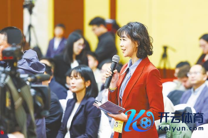 三月六日下昼,十四届宇宙东说念主大四次会议湖北代表团举行第三次举座会议暨媒体敞开日行动。图为央视记者现场发问。