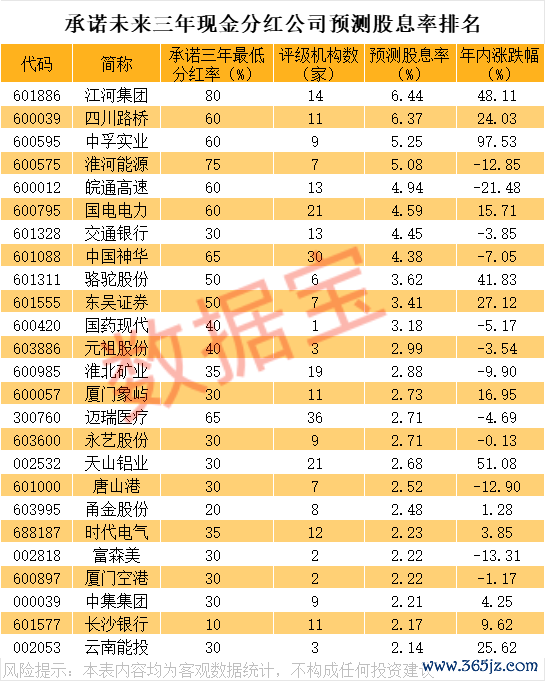 夙昔三年现款分成公司推测股息率排行夙昔三年现款分成公司推测股息率排行