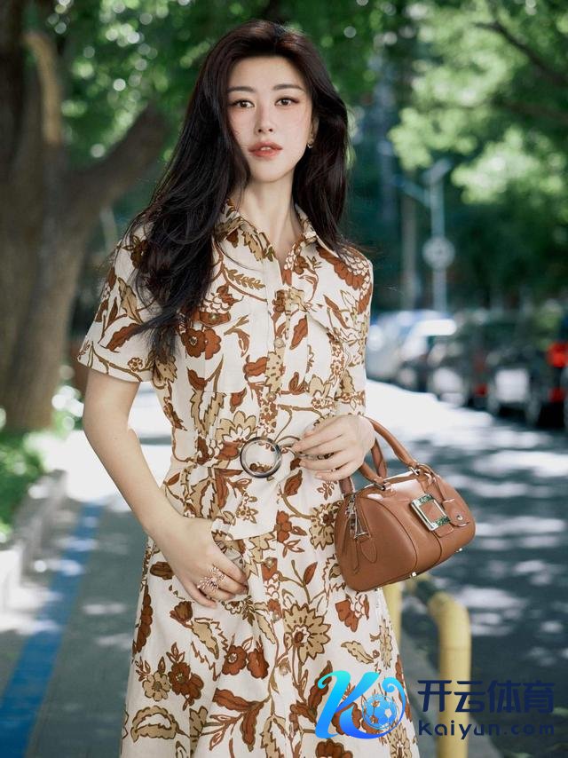 再看这孤单搭配,朱珠用一条米白色的棕调花草衬衫连衣裙,把尺度慵懒与东方韵味无缺交融。裙身以奶白色为基底,印满守旧棕调的大朵花草图案,暖棕与米白的撞色自带守旧滤镜,不会像高豪阔印花那样张扬,又能在东说念主群中脱颖而出,无缺适配春夏的阳光氛围。